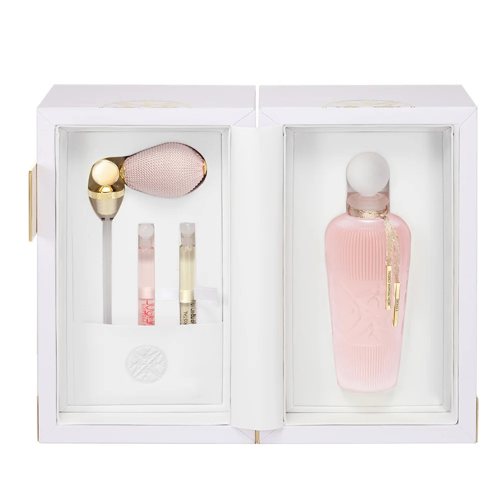 - discovery vials of the two other fragrances in the Mon Premier Cristal collection